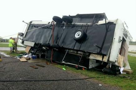 RVs and travel trailers cannot withstand high winds produced by severe thunderstorms, tornadoes, or hurricanes.