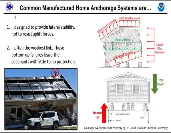 Regardless of how well a mobile, manufactured home, or trailer is constructed, anchor system failures are the primary cause of most fatalities during severe weather.
