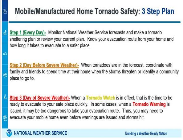 Whether you already live in a mobile home or are planning to purchase one, there are steps you can take to improve its survivability during severe weather.